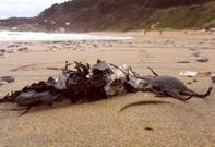 La marea negra tiñe ya la pantalla de aparejos de pesca tendida a la entrada del muelle Los concellos de Mañón y Ortigueira carecen de medios materiales para proteger el litoral
