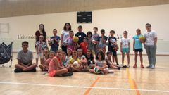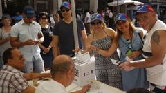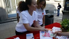 El dúo musical Canela Fumé ameniza la actividad organizada desde la Cruz Roja de Ourense para incentivar la participación de los ourensanos en esta lotería