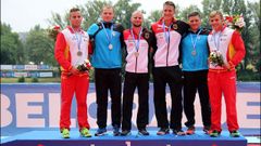 Participan juntos en el triunfo del K-4 500, el lucense vence en K-2 200 y el cangués se cuelga la plata del K-2 500. Teresa Portela (K-1 200), Adrián Sieiro (C-1 200) y Tono Campos (C-1 5.000), cuartos en sus finales de la última jornada en Belgrado