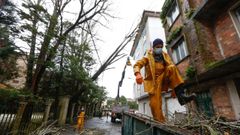 En Cambados se desplomó un árbol sobre un edificio, en Valga sobre una carretera, en Meis sufrieron cortes de luz y Vilagarcía clausuró sus zonas verdes