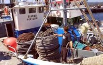 Los participantes en la regata Rías Baixas asistieron en Pobra a una fiesta de fin de etapa en la que se entregó el atún de oro a los primeros clasificados de la jornada