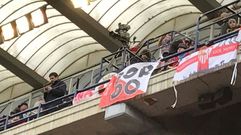 Sobre una tela con el fondo rojo y blanco se podía leer la palabra «Gordo», otro de los motes con el que se conoce a uno de los cinco detenidos por la violación en San Fermines