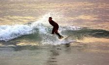 En invierno, la playa grovense es un auténtico remanso de tranquilidad. Sin bañistas, el magnífico arenal se torna en reino de surfistas, pescadores y aficionados al paseo