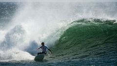 El surfista francés afincado en Galicia Eric Rebiere relata los momentos de angustia vividos en el campeonato mundial de olas gigantes en Nazaré (Portugal)
