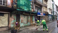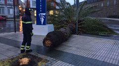 El viento derribó árboles y postes del tendido eléctrico, provocó desprendimientos en fachadas y levantó tejados y causó daños en elementos de la decoración. En Mugardos se inundó una vivienda a última hora de ayer