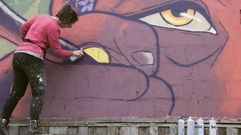 Una intervención artística en el establecimiento hostelero dio el pistoletazo de salida a una nueva edición del festival de arte urbano feminista y conceptual Delas Fest