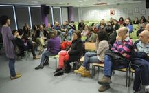 Mayores y pequeños rodearon la plaza en una acción lúdica y reivindicativa convocada por el ANPA para exigir a Educación una zonificación que no perjudique al centro, donde estudian más de 350 alumnos de infantil y primaria