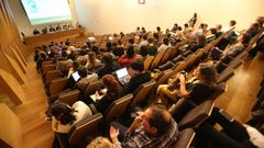 El catedrático de Economía Fernando González Laxe y el profesor de la Universidad de Vigo, Patricio Sánchez, fueron los encargados de poner ayer el punto y final a la actividad