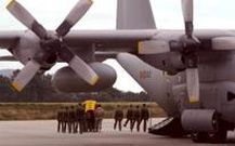 Un avión Hércules aterrizó en la pista de Peinador con el cadáver del zapador de la Brilat fallecido en Irak Una formación militar trasladó a hombros el ataúd ante la familia y los altos mandos