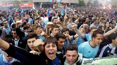 04 may 2017 Un Vigo celeste recibe a los hinchas del Manchester La afición del conjunto inglés comienza a dejarse ver por el Casco Vello M. MORALEJO